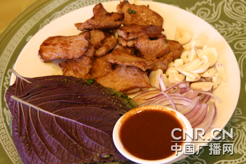蘇子葉獨(dú)特的問道、蒜香滲入牛肉之中,香而不膩。
