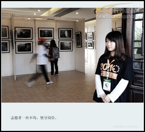忘不了200余名志愿者默默無聞地奉獻。“每天6點多起床,7點出發(fā),8點達到橘子洲,一站就站到下午6點!眻鲳^組志愿者劉茜萍說,雖然每天工作很累,但是大家都毫無怨言,因為從這份鍛煉中,大家都覺得獲得了更多的東西,比如對攝影的學習,比如英文的提升,比如國際友誼。而組委會的貼心安排為他們免去了很多后顧之憂,大家覺得辛苦可是值得。布展,發(fā)票,檢票,采訪,翻譯……橘子洲攝影節(jié)的任何工作中,都看到了志愿者勤奮的身影,他們的工作讓很多人都豎起大拇指!斑@些志愿者素質很高,工作很不錯!眳⒓訑z影節(jié)的嘉賓們多次這樣說。