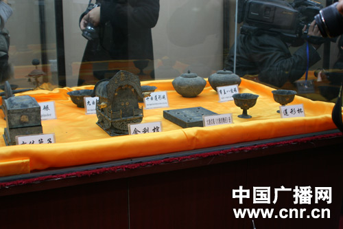 中廣網(wǎng)金鄉(xiāng)12月6日消息(記者 陳佳)下午,第四屆網(wǎng)絡(luò)媒體濟(jì)寧行記者團(tuán)參觀了位于縣城中心的金鄉(xiāng)縣光善寺塔出土的唐代佛教圣物,據(jù)悉,光善寺塔系磚石結(jié)構(gòu),石臺(tái)底座,磚砌八角形九層樓閣式建筑,頂為鐵質(zhì)葫蘆型,通高49米,2006年12月7日被山東省人民政府公布為第三批省級(jí)重點(diǎn)文物保護(hù)單位。由于歷史悠久等原因,塔內(nèi)墻體和樓梯破損嚴(yán)重,急需進(jìn)行搶救性維修保護(hù)。2010年5月21日在維修塔體至二層半高度時(shí),檢測(cè)磚體酥減過(guò)程中,發(fā)現(xiàn)磚體松動(dòng),取出上部墻面酥減磚體,內(nèi)部墻面出現(xiàn)了一個(gè)券頂式壁龕,內(nèi)置包括佛塔、舍利棺在內(nèi)的22件銀質(zhì)文物、舍利一宗,為研究唐代佛教文化和當(dāng)?shù)胤鸾贪l(fā)展史,提供了極為珍貴的實(shí)物資料。
