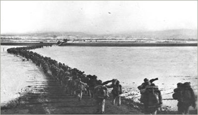 10月19日晚,志愿軍第一批入朝參戰(zhàn)部隊悄然跨過鴨綠江。隨后志愿軍共6個軍相繼入朝,總兵力約30萬人。彭德懷任司令員。