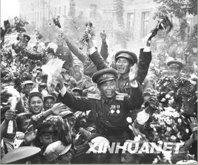 女:在慶祝新中國成立60周年之際,三位參加過開國大典閱兵式的老戰(zhàn)士將帶我們重溫歷史,感受光榮。請聽報道《1949年開國大典閱兵》,中央臺記者郭林雄、韓瑞斌采制: