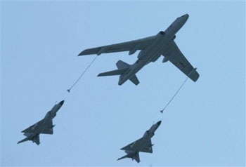 孫偉:現(xiàn)在從唐山起飛的飛機飛行梯隊主要是轟炸機和教8教練機梯隊,其中教-8教練機梯隊也是大家所關(guān)心的女飛行員梯隊,轟炸機梯隊是60年國慶飛機梯隊里最具震撼力,也是聲勢最浩大的飛機,將有9架轟炸機分別分成三個梯隊飛過天安門廣場,接受胡主席和黨和國家領(lǐng)導(dǎo)人的檢閱。