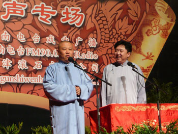 主持人:這應(yīng)該是對于我們相聲怎么樣能夠更多的抓住觀眾的心理需求提出了新的挑戰(zhàn),現(xiàn)在我們的傳播的渠道越來越多,我想對相聲也是一個新的春天,大家可以上網(wǎng),上博客,上手機更多了解到我們的相聲的文化,包括現(xiàn)在很多的外國人都提出熱衷于學(xué)中國的相聲了,我想現(xiàn)在不僅僅是相聲,包括很多中國很多的傳統(tǒng)文化,曲藝文化都在開始承擔(dān)著一種新的文化傳播的責(zé)任,我也相信我們中華的傳統(tǒng)的文化,特別是像相聲這樣的傳統(tǒng)曲藝文化,一定會與時俱進,越來越符合大家的要求。