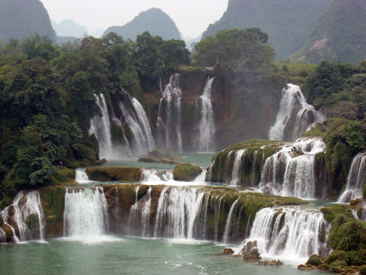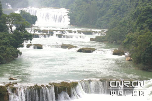 在德天瀑布下游數(shù)公里的河段上,往日里不露聲色的沙屯疊布也盡顯風(fēng)流,引無(wú)數(shù)游客駐足觀(guān)賞,贊不絕口。