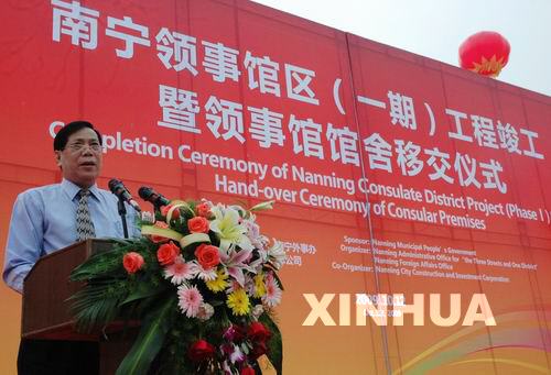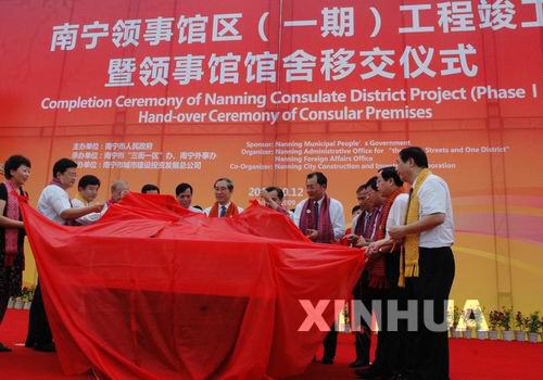 中廣網(wǎng)北京10月13日消息 12日,南寧領(lǐng)事館區(qū)(一期)工程竣工暨領(lǐng)事館館舍移交儀式在廣西南寧舉行。當(dāng)天移交的柬埔寨和老撾駐南寧領(lǐng)事館成為進(jìn)駐領(lǐng)事館區(qū)辦公的第一批領(lǐng)事館。據(jù)介紹,2008年10月開工建設(shè)的南寧領(lǐng)事館區(qū)是中國—東盟商務(wù)區(qū)的重要組成部分,主要規(guī)劃建設(shè)東盟以及世界其他國家駐南寧領(lǐng)事館,規(guī)劃用地130畝,設(shè)置13個(gè)國家領(lǐng)事館和1個(gè)服務(wù)中心,每個(gè)館舍集辦公、展覽、接待、住宿等多功能為一體。
