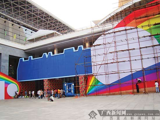 南寧國際會展中心展館入口處的巨型鑰匙模型即將搭建完成(來源:廣西新聞網(wǎng))