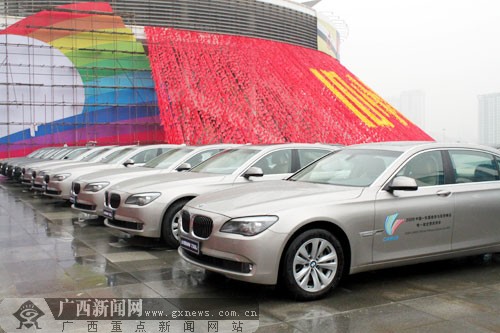 作為第六屆中國-東盟商務與投資峰會指定貴賓接待用車的11輛BMW 730Li轎車。(來源:廣西新聞網(wǎng))