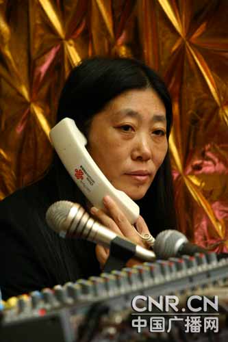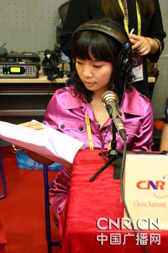 中央臺記者、主持人馮雅正在與中國之聲連線(中廣網(wǎng)記者董雯 攝)