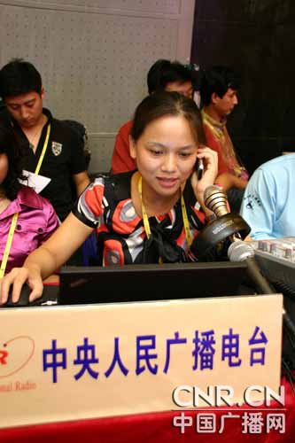 直播組負責人正在與中國之聲聯(lián)絡(luò)(中廣網(wǎng)記者董雯 攝)
