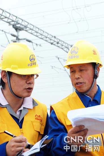 巨曉林在遷曹線施工中進行接觸網(wǎng)相關(guān)的作業(yè)