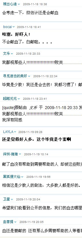 “血漿澆花”事件因為網(wǎng)絡上的帖子而風波大起,又在網(wǎng)絡上風平浪靜,看到其結(jié)果,網(wǎng)友們感覺大快人心,但是事件的背后卻留給我們很多的思考,關于如何加強血漿的監(jiān)管力度,如何向公眾告知血漿的用途,如何將義務獻血透明化,網(wǎng)友們迫切地希望看到有關部門未來的行動。 網(wǎng)絡可以把事件的影響擴大化,網(wǎng)絡聲討固然是一種手段,但聲討的尺度與方式該如何把握和選擇?是不是非要置其死地而后快?大家要的結(jié)果是什么呢? 一位中廣網(wǎng)的博客說:“在網(wǎng)絡上由此而產(chǎn)生的還要不要進行無償鮮血的爭論亦是十分激烈,有些網(wǎng)友開始懷疑自己的愛心到底值不值得,在這里我想答案是肯定的,因為我們的每一滴血都是熱的,在別人有困難的時候我們?nèi)匀粫x無反顧的去幫助他們,原因很簡單,因為這不僅僅是一種美德,更加是一種責任,一種對生命的重視和慰藉!