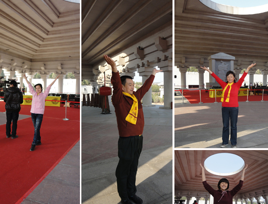 原來,軒轅殿的設(shè)計思路尊崇了古時候人們所認(rèn)為的“天圓地方”,游客雙手托舉的姿勢正好可以托起大殿頂上的露天部分,取義“托起一片天”?煺諑煾蹈嬖V記者,雙手托舉“天空”的姿勢是在軒轅廟留影的最佳姿勢,多數(shù)游客都是在他的指導(dǎo)下拍出了黃帝陵留影的最完美照片。
