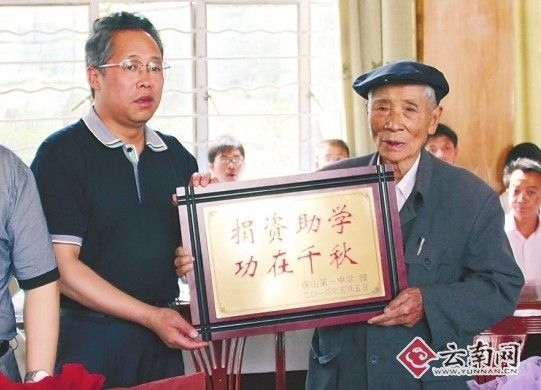 2010年5月5日,楊善洲把保山市委、市政府為他頒發(fā)的20萬元特別貢獻(xiàn)獎中的10萬元捐贈給保山第一中學(xué),另外10萬元將捐贈給大亮山林場。