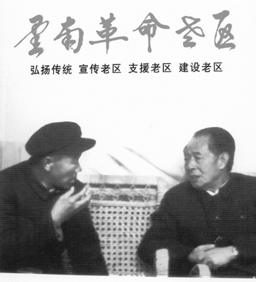 《云南革命老區(qū)》雜志2011年1月號以楊善洲向胡耀邦同志匯報工作的照片為封面(攝于1980年10月23日胡耀邦同志視察保山時)