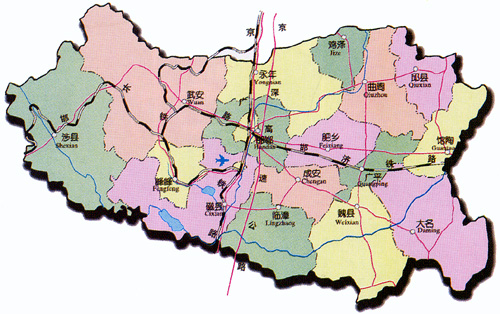 邯鄲市1985年被國(guó)務(wù)院批準(zhǔn)為對(duì)外開(kāi)放城市,1992年又被國(guó)務(wù)院批準(zhǔn)為較大的市,F(xiàn)轄四區(qū)、一市、十四縣。四區(qū)為邯山區(qū)、叢臺(tái)區(qū)、復(fù)興區(qū)、峰峰礦區(qū);一市為武安市;十四縣為邯鄲縣、臨漳縣、成安縣、大名縣、涉縣、磁縣、肥鄉(xiāng)縣、永年縣、邱縣、雞澤縣、廣平縣、曲周縣、魏縣、館陶縣。全市共有214個(gè)鄉(xiāng)鎮(zhèn)、5403個(gè)行政村。
