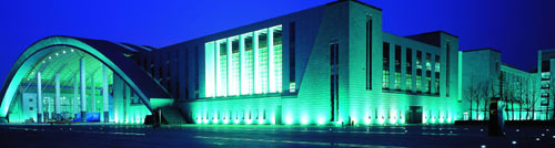 由中國(guó)建筑設(shè)計(jì)研究院設(shè)計(jì)的寧波國(guó)際會(huì)議展覽中心被稱為"中國(guó)最豪華的展覽館"。它設(shè)計(jì)先進(jìn)、布局合理、配套設(shè)施齊全,是一個(gè)集展覽、展示、商貿(mào)洽談、餐飲、倉(cāng)儲(chǔ)等綜合服務(wù)功能于一體的大型智能型現(xiàn)代化會(huì)議展覽中心。