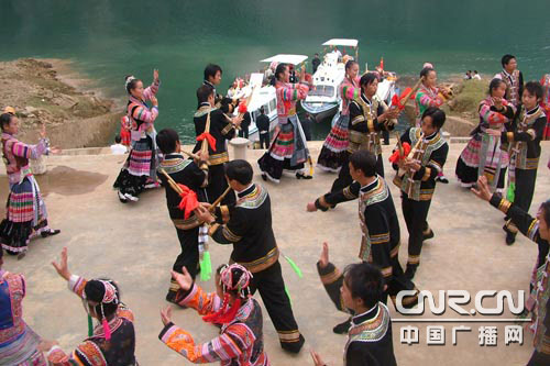 中廣網(wǎng)貴州9月30日消息(記者王貴山 羅勝 實習(xí)記者吳倩)“烏江源百里畫廊(東風(fēng)湖)--化屋苗寨--織金洞”這是畢節(jié)地區(qū)打造的第一條精品路線, 9月28日在黔西縣新仁苗族鄉(xiāng)化屋苗族風(fēng)情園舉行首游儀式。崔巍迤儷的懸崖峭壁,神秘奇特的喀斯特地貌,多姿多彩的民族風(fēng)情,綿延300多公里長如夢似幻的“烏江畫廊”,有著“洞中王”美譽的織金洞,沿路目不暇接的美景,總能讓人沉醉于這美景之中,流連忘返。