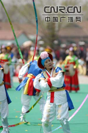 汽車一進延吉市,就傳來了朝鮮族民謠的聲音,不遠處的廣場上,正在上演一臺朝鮮族風情歌舞。粉紅的長裙隨著姑娘們歡快的舞步飄動著,小伙子帽子上長長的絲帶在飛旋。