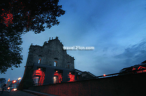 印象中的大三巴巍然聳立,直指云天,雄偉而壯觀,到了現(xiàn)場一看,才知道它原來座落在一片老街區(qū)中,空間狹小。近看大三巴,更多的是感受它的精美和滄桑!叭汀笔且糇g。大三巴牌坊原是建于1602年的“圣保祿”教堂,教堂原屬遠東第一所大學圣保祿學院所有,教堂從奠基至竣工共歷30幾年,然于1830年毀于一場大火,只剩下大三巴牌坊。牌坊由巨石徹成,共分五層,上面雕刻著許多宗教人物故事,最高一層塑有一只白鴿,據(jù)說其眼睛原嵌有寶石,在經(jīng)濟困難時期,一些澳門人冒著生命危險攀上去偷寶石,結果寶石沒取到,摔死的倒不少,后來有教士把寶石取下來以免再發(fā)生“鳥為食亡”的慘劇。藝術、歷史價值都相當高的牌坊,幾百年來屹立不倒,默默地俯視著腳下這片土地的興衰,而生生不息的澳門人也歷經(jīng)艱辛,把澳門建設成美麗的東西方文化交匯之地。經(jīng)歷滄桑,見證澳門幾百年發(fā)展的大三巴也成為了澳門的象征。 |