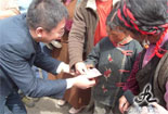 與孩子之間語(yǔ)言不通 藏族歌手阿浪多杰正在翻譯
