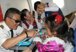 剛登上飛機(jī)的益登措姆顯得有點(diǎn)害羞