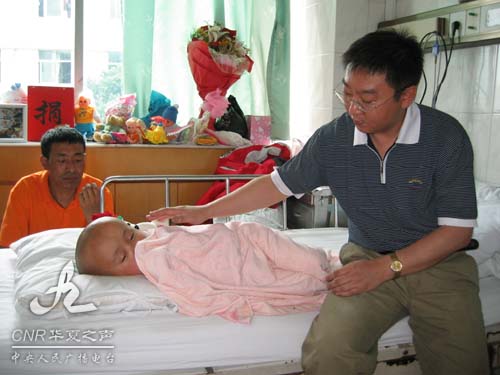 5月3日中午,深圳市第二人民醫(yī)院神經(jīng)外科的幾名醫(yī)生為益登措姆進(jìn)行了腦積水美藍(lán)試驗(yàn)術(shù)。經(jīng)過兩個(gè)半小時(shí)的時(shí)間,手術(shù)順利地完成。神經(jīng)外科主任李維平向記者介紹說:“通過這一次的手術(shù),確診了小措姆的病情屬于梗阻性腦積水,并確定手術(shù)的最終方案將采取腦室—腹腔分流術(shù),即通過Y型管把腦積水引流到腹腔內(nèi)!