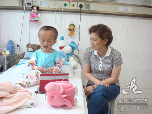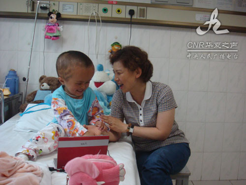 6日,華夏之聲副總監(jiān)胡軍及華夏之聲深圳編輯部主任孫松濤來(lái)到醫(yī)院看望了益登措姆,小女孩象見(jiàn)到了親人一樣,給他們唱歌、跳舞,和他們做游戲,度過(guò)了一個(gè)無(wú)比快樂(lè)的下午。