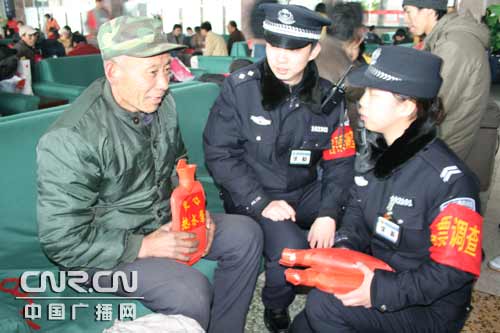 南寧鐵路警方從“關(guān)注民生”出發(fā),自發(fā)捐款購(gòu)買(mǎi)暖水袋送給在寒冷天氣中候車(chē)的老人、婦女和小孩,給他們送去關(guān)懷和溫暖,贏得了旅客的高度贊揚(yáng)。