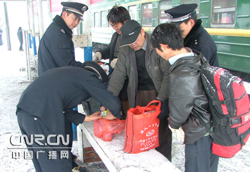 中廣網(wǎng)昆明1月31日消息(記者賈宜超 通訊員李鳴放 王正東)今年的大雪和凍雨天氣,給地處貴州六盤水市境內(nèi)的昆明鐵路公安局水柏車站派出所和紅果車站派出所轄區(qū)內(nèi)運輸生產(chǎn)帶來了安全隱患。為確保管內(nèi)線路安全暢通,昆明鐵路公安處黨委派出主管治安的副處長為“水紅線”包保干部,率領(lǐng)從處機關(guān)各科、室緊急抽調(diào)出來的19名干警于2月29日趕赴“水紅線”,與水柏車站派出所和紅果車站派出所民警緊密配合。 |