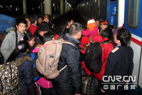 中廣網(wǎng)蘭州2月3日消息(記者焦健)又到了一年一度的交通繁忙期,雖然遭遇雨雪天氣,但是人們返鄉(xiāng)的熱情絲毫未減,乘坐火車回鄉(xiāng)的人數(shù)猛增。