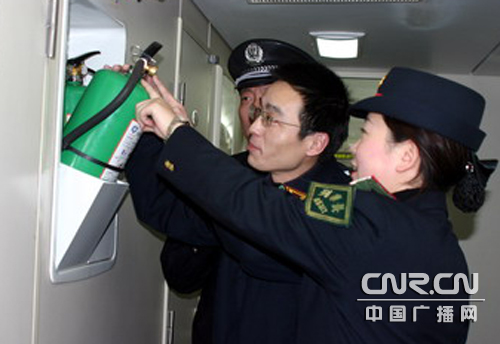 z37次列車(chē)的乘務(wù)人員在細(xì)心檢查防火設(shè)備