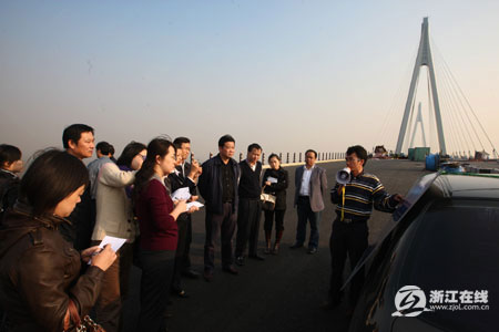 中廣網(wǎng)4月10日消息 一橋飛架南北,天塹變通途。走在全世界最長的跨海大橋上,就是這樣一份直觀的感受。今天上午,“走遍長三角”采訪組考察了正在如火如荼建設(shè)之中的杭州灣跨海大橋海鹽樞紐工程!