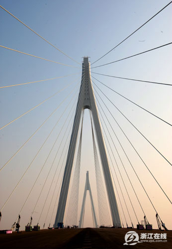 目前,杭州灣跨海大橋嘉興海鹽段的橋面道路已完成鋪瀝青這一最后工序,在對大橋進(jìn)行綠化、交通安全設(shè)施及機電工程建設(shè)后,將趕在2008年6月前通車。