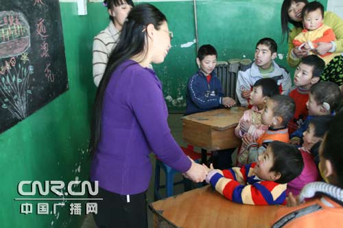 中廣網(wǎng)赤峰12月5日消息(記者李志勇)聾啞兒康復(fù)是一個艱辛而漫長的過程。為了學(xué)會口舌操中的一個卷舌音,孫月光把筷子橫放在舌頭上,使舌頭盡量把筷子一點點卷起來,一有空就站在鏡子前面練習(xí),經(jīng)過了無數(shù)次的演練,她總能靈活自如的給孩子們做示范了。在寓言訓(xùn)練中,對于正常孩子很容易說出來的詞、音,但要讓聾兒說出來,需要孫月光教幾十遍甚至上百編,一點點的定口型,擺舌位,正音調(diào),練到孩子們一看就懂為止,在引導(dǎo)他們?nèi)ダ斫、去運用。 |