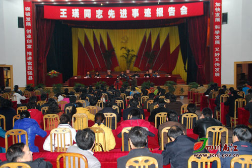 | 中廣網(wǎng)北京12月25日消息 12月24日下午,四川南江縣在縣人民大禮堂隆重舉行王瑛同志先進(jìn)事跡報(bào)告會電視直播大會?h委副書記、縣長張長云作重要講話,縣委常委、組織部長邵俊華宣讀《中共南江縣委關(guān)于向王瑛同志學(xué)習(xí)的決定》,縣委常委、宣傳部長楊秀華主持報(bào)告會。縣政協(xié)主席杜純裕,縣人大黨組書記、副主任郭治中,縣委常委、副縣長劉凱,縣委常委、政法委書記涂光明,縣委常委、副縣長王清平等領(lǐng)導(dǎo)在主會場出席。