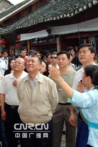 初夏的青巖古鎮(zhèn),艷陽(yáng)高照,不時(shí)有徐徐的微風(fēng)拂過(guò),帶來(lái)陣陣涼爽。由于是周末,游客眾多,人來(lái)人往,異常熱鬧。何厚鏵欣然站在城樓前,與大家合影留念。參觀時(shí),何厚鏵不時(shí)向路旁的人群揮手致意,不少游客和居民認(rèn)出了何厚鏵,這在人群中引起了震動(dòng),大家紛紛鼓掌歡迎何特首的到來(lái)。
