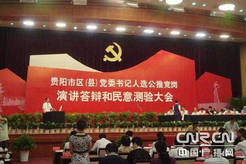 貴陽(yáng)區(qū)縣黨委書記人選公推競(jìng)崗演講答辯現(xiàn)場(chǎng)