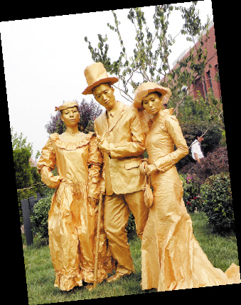 這次大型游園會將首次引進(jìn)活體雕塑藝術(shù)展。這種起源于西方的行為藝術(shù)是通過真人涂繪達(dá)到雕塑的逼真效果,并配以肢體語言向人們展示其藝術(shù)內(nèi)涵。此次在水上公園進(jìn)行表演的是在京城享有盛名的北京文海藝術(shù)中心活體雕塑藝術(shù)表演團(tuán)。游園會期間將表演“彈吉他的藝人”、“金色美人魚”、“亞當(dāng)和夏娃”、“西部牛仔”、“白色騎士”等節(jié)目。