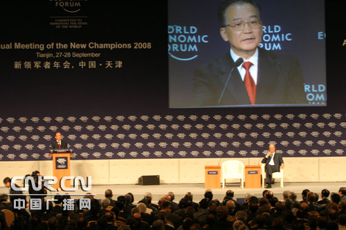 | 中廣網(wǎng)天津9月27日消息(記者鄭凱 劉志剛 劉樂(lè))由世界經(jīng)濟(jì)論壇主辦的第二屆新領(lǐng)軍者年會(huì)開(kāi)幕式,即第二屆夏季達(dá)沃斯論壇年會(huì)開(kāi)幕式今天(27日)下午在天津?yàn)I海新區(qū)舉行,中國(guó)國(guó)務(wù)院總理溫家寶出席開(kāi)幕式并發(fā)表特別致辭。