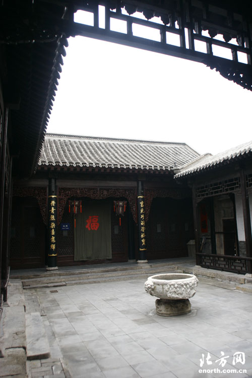 石家大院是清代津門八大家之一石萬程第四子石元士舊宅,稱尊美堂。始建于1875年,占地6千多平方米,有“華北第一宅”之稱。堂院坐北朝南,南北長96米,東西寬62米,占地面積6080平方米,其中建筑面積2900多平方米。整個建筑包含12個院落,所有院落都是正偏布局,四合套成?邕M石家大院大門,首先映入眼簾的是一條大青方磚鋪就的長甬道。甬道的東側(cè),原是石氏家族的起居寢室,現(xiàn)在是展品陳列區(qū),陳列了楊柳青木版年畫的歷代杰作和磚雕藝術(shù)品。甬道西側(cè),主要有花廳、戲樓、佛堂等建筑,是石氏家族會晤賓朋、娛樂消閑、誦經(jīng)禮佛的場所,現(xiàn)辟為博物館的“石府復原陳列區(qū)”。石家大院的戲樓是北方最大的民宅戲樓,造型落落大方,特別是以美輪美奐的內(nèi)部裝點著稱于世。佛堂西面是“天津民俗陳列館”了,這里展現(xiàn)了具用濃郁地方民間特色的楊柳青風箏、剪紙、花會道具以及婚俗等。大院建筑的內(nèi)外檐裝修,用料考究,作工精細,磚雕木刻形式多樣,是清代津沽豪富住宅常見的做法。 |
