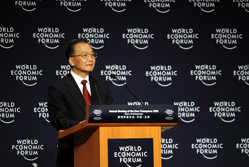 9月27日,世界經(jīng)濟(jì)論壇2008年新領(lǐng)軍者年會(huì)在天津?yàn)I海新區(qū)開幕。中國國務(wù)院總理溫家寶出席開幕式并致詞。新華社記者 馬平 攝