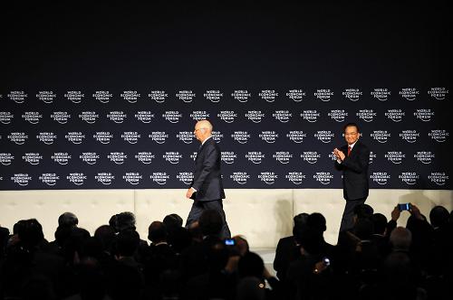 9月27日,世界經(jīng)濟(jì)論壇2008年新領(lǐng)軍者年會(huì)在天津?yàn)I海新區(qū)開幕。這是中國國務(wù)院總理溫家寶和世界經(jīng)濟(jì)論壇創(chuàng)始人兼執(zhí)行主席克勞斯·施瓦布走上主席臺(tái)。新華社記者 馬平 攝
