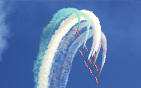 印度“陽光”飛行表演隊(duì)進(jìn)行精彩表演