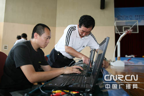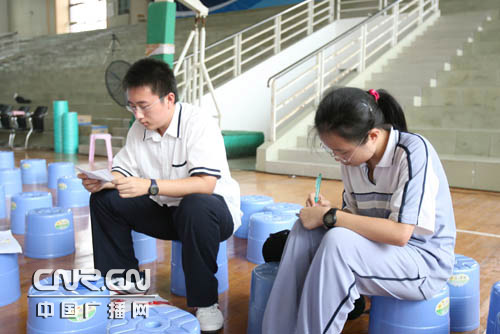 珠海一中的學(xué)生主持人在做準(zhǔn)備