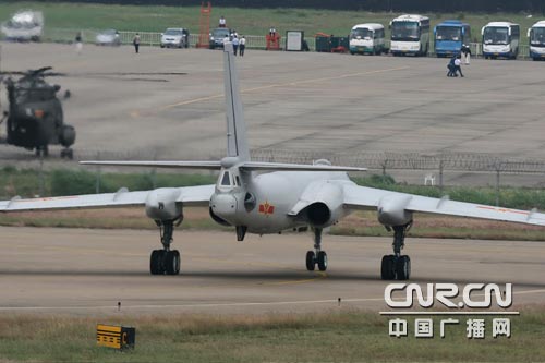 中廣網(wǎng)珠海11月6日消息(記者溫廣為、梁衛(wèi)浩、張丹麗) 昨天是第七屆中國(guó)航展的第二天,經(jīng)中央軍委批準(zhǔn),中國(guó)空軍派出8架?chē)?guó)產(chǎn)多型戰(zhàn)機(jī)參加航展,以全面開(kāi)放的姿態(tài)和強(qiáng)大的實(shí)力向世界展示了中國(guó)空軍的風(fēng)采。轟油-6、殲-8D、殲-10、殲轟-7、直-8、直-9等一一亮相,成為本屆航展第2天風(fēng)頭最勁的明星。