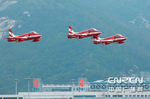 中廣網(wǎng)珠海11月6日消息(記者溫廣為 梁衛(wèi)浩 張丹麗)珠海航展第二天,來自印度的“陽光”特技飛行表演隊(duì)再次為現(xiàn)場觀眾獻(xiàn)上了一場精彩的特技表演。