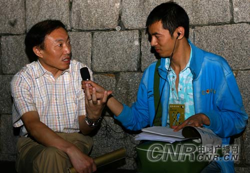 26日,來自荷蘭的“ICP樂團(tuán)”在澳門大炮臺上演了一場精彩的、風(fēng)格前衛(wèi)的“即興式”爵士樂演奏會。在演出現(xiàn)場,中央臺華夏之聲記者張旭采訪了澳門高等藝術(shù)學(xué)校校長、音樂學(xué)教授戴定澄先生(左)。 中廣網(wǎng)記者李洪濤 攝