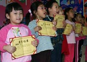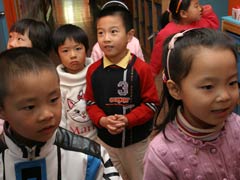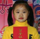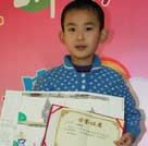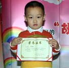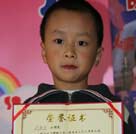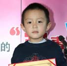 來自金色搖籃幼兒園的馮天俊小朋友有著靦腆的表情和稚嫩的聲音