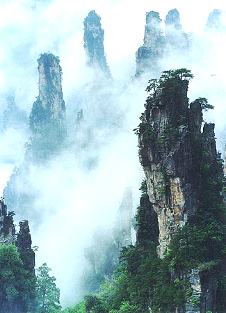 武陵源風(fēng)景區(qū)位于湖南省西北部,由張家界市的張家界森林公園、慈利縣的索溪峪自然保護(hù)區(qū)和桑植縣的天子山自然保護(hù)區(qū)組合而成,總面積500平方公里。最近又發(fā)現(xiàn)楊家界新景區(qū)。武陵源風(fēng)景區(qū)是80年代初“新發(fā)現(xiàn)”的“養(yǎng)在深閨人未識(shí)”的深山明珠。這里的砂巖峰林千奇百怪,似人似物,惟妙惟肖,在那靜謐的幽谷里,沒有任何人工雕鑿,有的是石柱石峰、斷崖絕壁、古樹名木、云氣煙霧、鳥鳴蟬噪、流泉飛瀑、珍禽異獸,人行其間,猶如到了一個(gè)神奇的世界和風(fēng)味天成的藝術(shù)山水長(zhǎng)廊。 |
