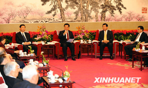 1月22日,中共中央在北京中南海召開黨外人士迎春座談會(huì)。中共中央總書記、國家主席、中央軍委主席胡錦濤發(fā)表重要講話。賈慶林主持,習(xí)近平、李克強(qiáng)出席。新華社記者李濤攝